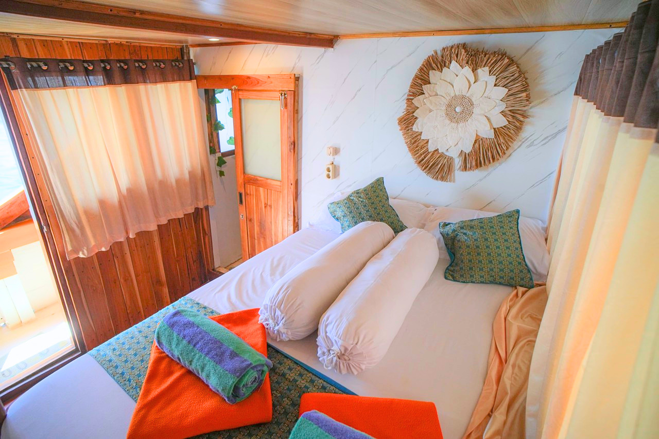Arfisyana Indah is a Deluxe Phinisi equipped with air conditioned cabins with private bathroom and sufficient fresh water for sail around the Komodo National Park