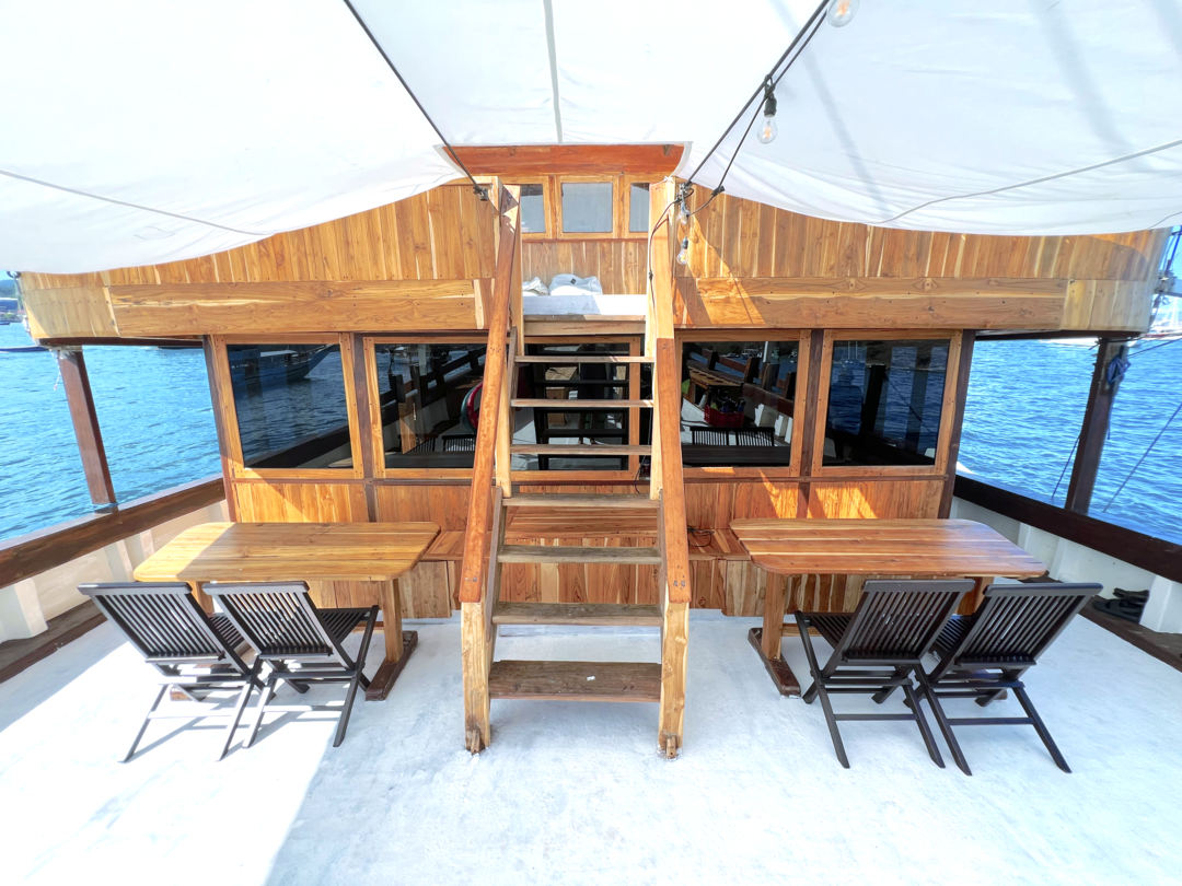 - Deluxe Cabin (Drupadi & Pandawa - Upper Deck, Aswatama &Kurawa; Main Deck) : Capacity : 2 pax, Queen size bed, Ensuite Bathroom, AC and Hot & Cold Water